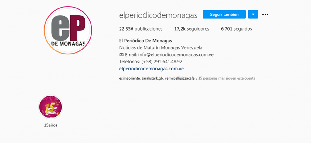 Siguiendo con el ejemplo del Medio de Comunicación, el “link de Bio” debería enviar al usuario a la página web del periódico.