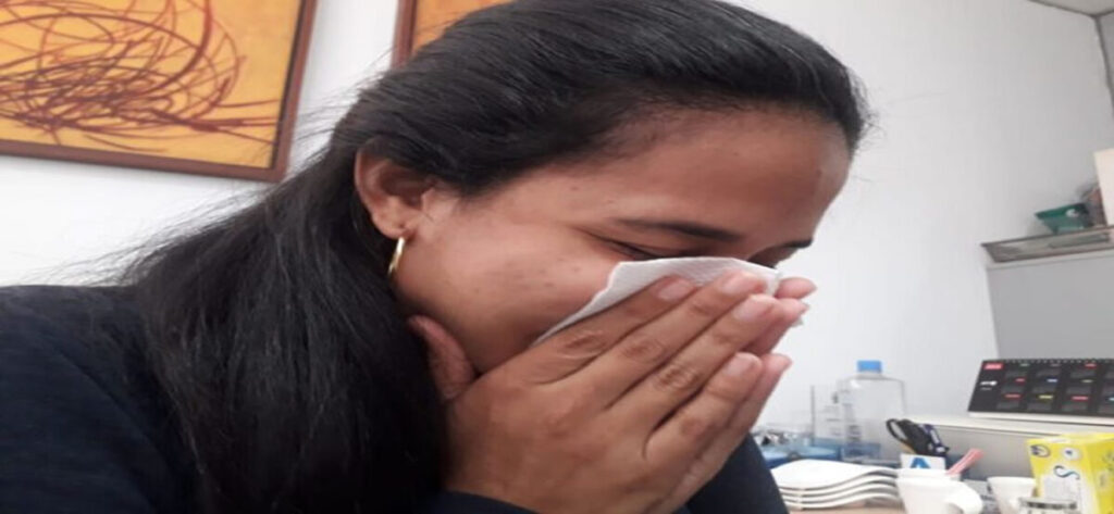 María Virginia Jiménez, de 53 años, comentó que actualmente presenta un proceso alérgico que le ocasiona tos, por lo cual debe evitar ambientes donde existan olores fuertes, polvo o exponerse a cambios bruscos de temperatura.