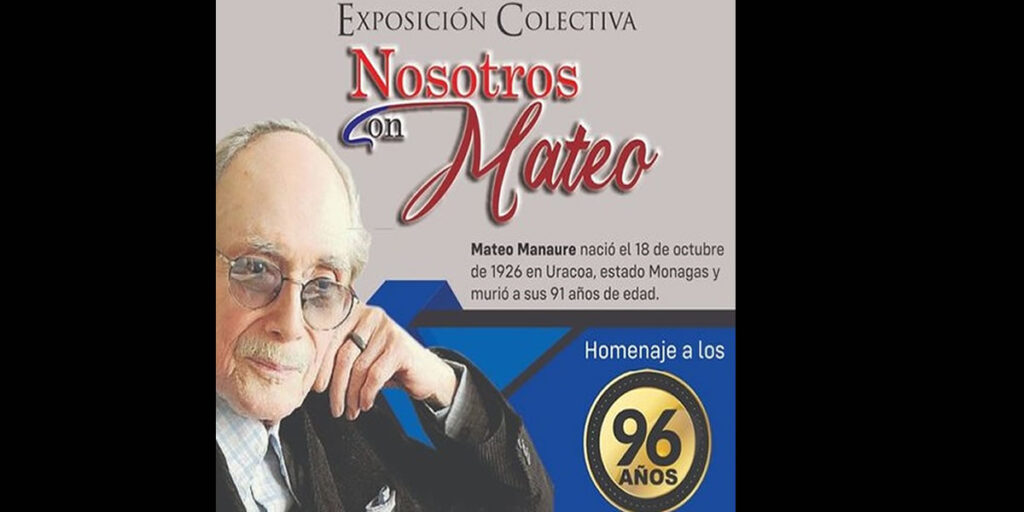 El Instituto de la Cultura del estado Monagas (ICUM), inauguró este martes 18 de octubre la exposición colectiva "Nosotros con Mateo", a propósito del natalicio del Maestro Mateo Manaure, artista moderno nacido en Uracoa. La muestra tendrá lugar en el museo contemporáneo que lleva el nombre del reconocido pintor.