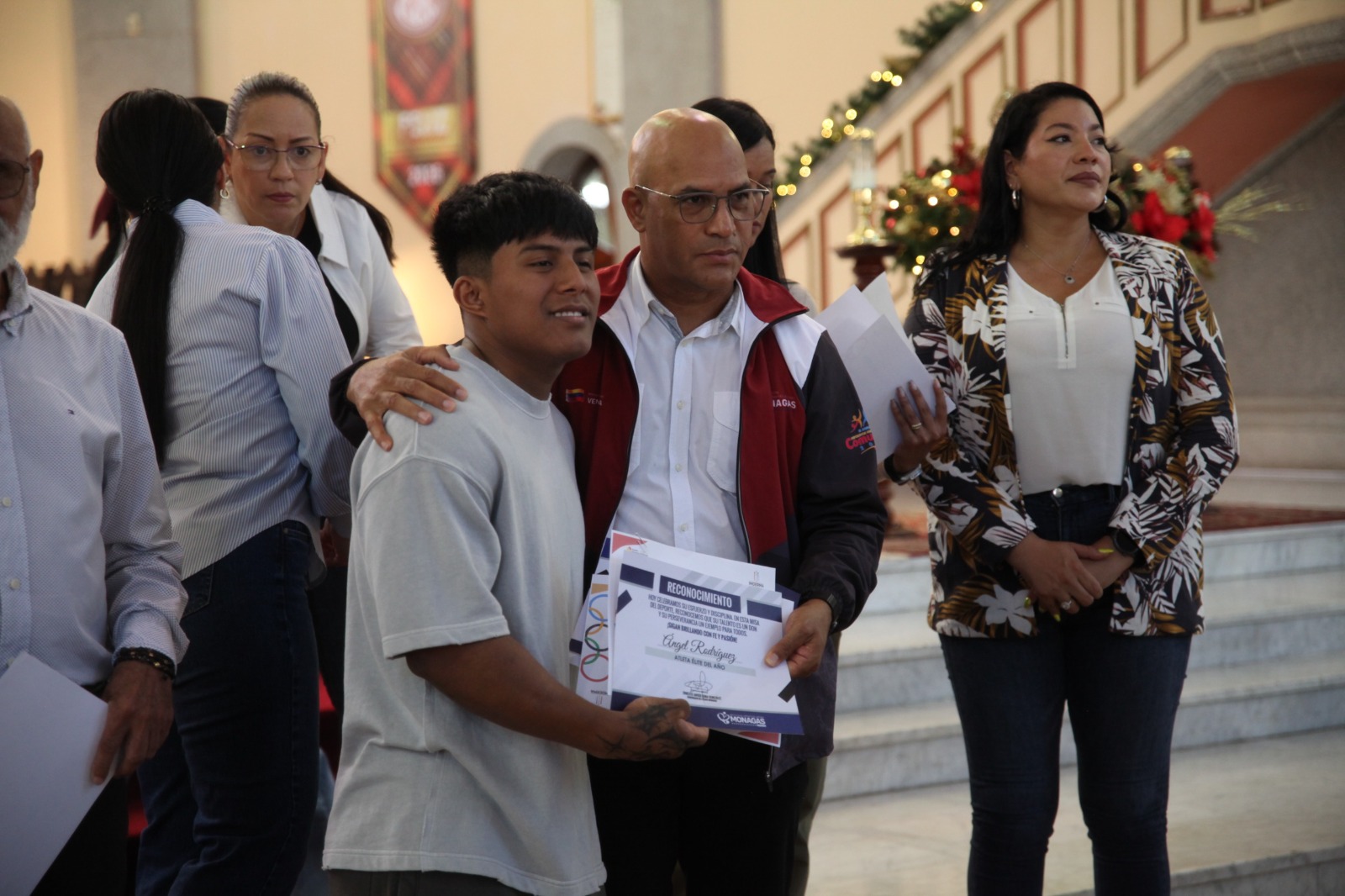 Los deportistas Ángel Rodríguez, campeón mundial de levantamiento de pesas, y Julieta Rengel, medallista de oro en pelota vasca, fueron reconocidos como los atletas del año, gracias a sus triunfos en escenarios nacionales e internacionales; mientras Luis García y Valeria Osorio, también de pesas, se llevaron la distinción como atletas juveniles.
