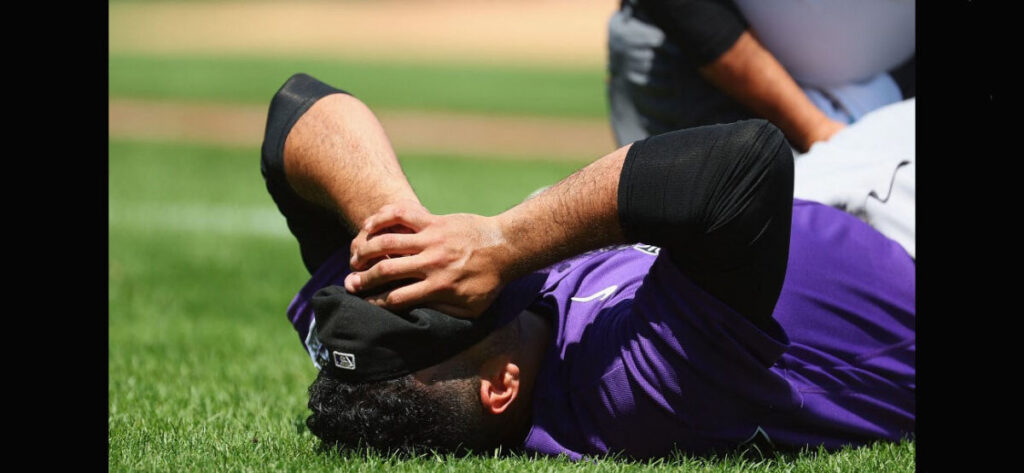 Senzatela, con evidentes muestras de dolor se lanzó al césped por la zona la primera base, desde donde fue asistido para salir del terreno de juego.