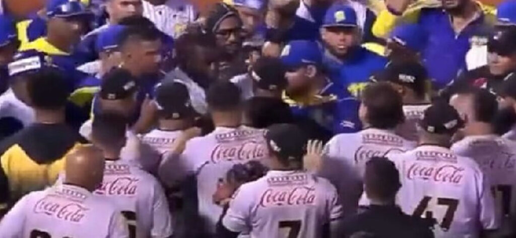 Con la adrenalina a mil por el partido cerrado que estaban jugando los equipos Navegantes del Magallanes y Los Leones del Caracas, se presentaron algunos incidentes entre de los jugadores.