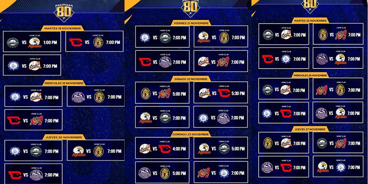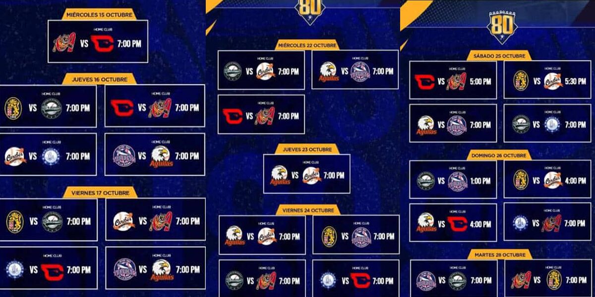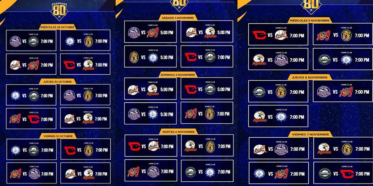Los campeones defensores, Cardenales de Lara, darán inicio al torneo el próximo 15 de octubre cuando reciban en Barquisimeto a Tigres de Aragua, mientras que el resto de equipos debutarán un día después.