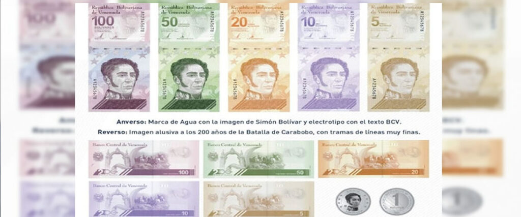El Banco Central de Venezuela publicó este miércoles en su Twitter los billetes de 5 y 10 bolívares, además de la moneda de un bolívar, que junto a los de 100, 50 y 20 bs ya publicados conformarán el nuevo cono monetario.