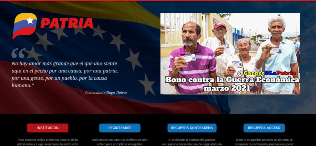 “Inicia la Entrega del Bono contra la Guerra Económica (marzo 2021) para pensionados y pensionadas enviado por nuestro presidente, Nicolás Maduro a través del Sistema Carnet de la Patria”.