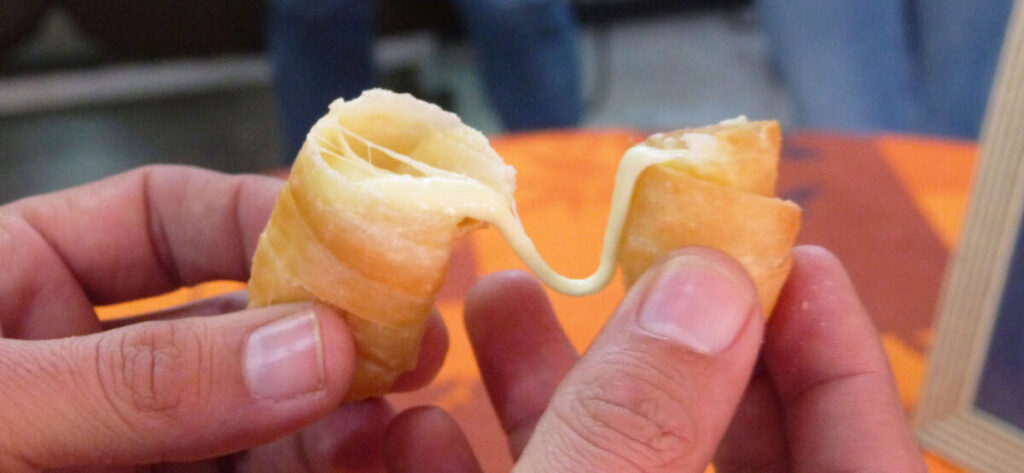 Para Dayana Mundaray el tequeño es el infaltable en nuestras fiestas, se ha popularizado mucho y ha alcanzado un desarrollo bastante grande en el país hasta el punto que ahora los hay de diferentes sabores, los hay de orégano, combinaciones de queso con plátano y los tequeños dulces de chocolate y de guayaba. Son hechos con masa de hojaldre y aunque hoy en día se han ramificado tanto el tradicional es el de queso que en el caso de Dayana le gusta el mozarella para rellenar el tequeño.