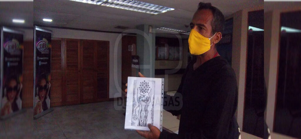 El profesor de lengua y literatura y también artista, Arlin Solano, debido a lo que ha marcado el Covid-19 en Venezuela y el mundo, puso su creatividad en una hoja para resaltar el arte y la salud.
