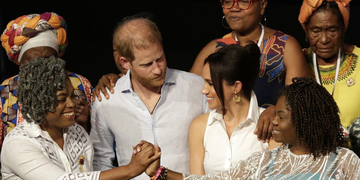 Fue allí, donde Meghan dio sus primeras palabras a Cali. Al mediodía de un domingo caluroso, la duquesa estuvo en el escenario junto a la vicepresidenta Francia Márquez, quien fue la artífice de esta visita en el país, y la exministra de Educación Aurora Vergara, quienes contaron sus historias de vida, entre luchas y logros como mujeres afro.