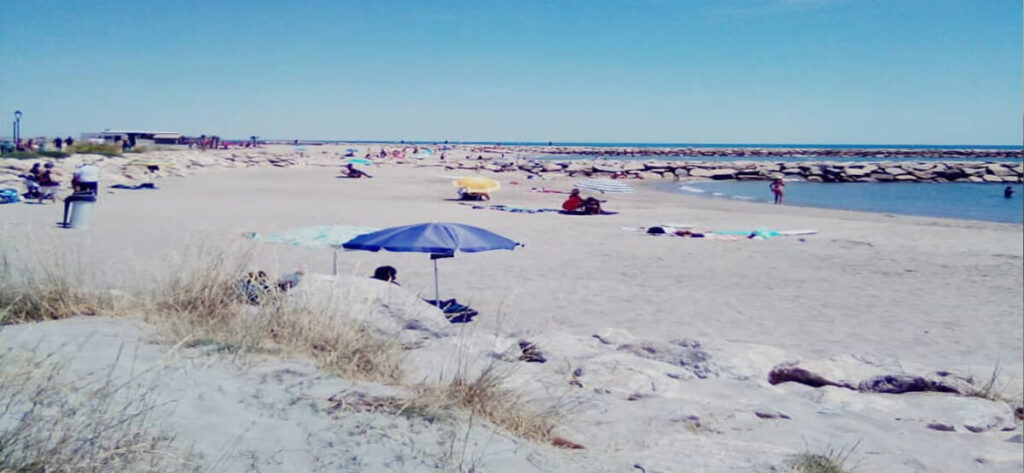 Esta pequeña ciudad de pescadores con casas blancas es un lugar destacado de peregrinación para los gitanos. La iglesia de Notre-Dame-de-la-Mer, construida en el siglo XII y fortificada en el siglo XV, parece una fortaleza de verdad. En verano, el centro turístico de Saintes-Maries-de-la-Mer presenta una gran animación, con sus playas, sus cafés, sus tiendas y restaurantes que ofrecen especialidades de Camarga, como la “gardiane”, estofado de carne de toro, o las chirlas, pequeños moluscos.