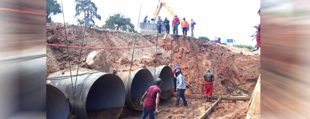 En un 50% por ciento han avanzado los trabajos de construcción del nuevo sistema de alcantarillado en la troncal 10, a la altura del morichal de Santa Barbara de Sotillo, en la vía al sur del estado Monagas.