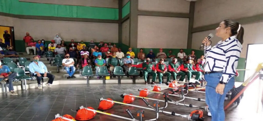 La actividad estuvo encabezada por la máxima autoridad civil, Mariangelis Tillero, quien hizo la entrega de bragas de seguridad, bastones desmalezadores, palas, picos y demás insumos de trabajo que permitirán mantener a la entidad como referente de la limpieza en el estado Monagas.