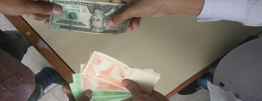 Esta escasez de dinero, ha permitido la proliferación de los “bachaqueros del efectivo” quienes vulgarmente hacen de las suyas, ofreciendo en venta billetes de 10, 20 y 50 mil bolívares, por transferencias electrónicas al 100%, en dólares en efectivo o bajo la figura de trueque por productos alimenticios superior al kilo.