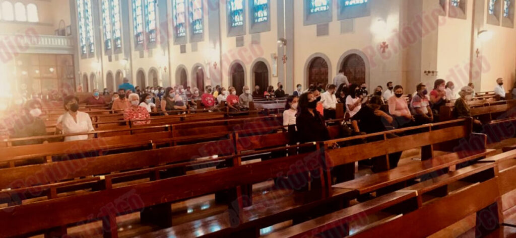 Las celebraciones se llevan a cabo bajo estrictas medidas de bioseguridad y de un protocolo establecido por el párroco Samael Gamboa. En la entrada del templo se están unas personas que aplican en las manos gel antibaterial y miden la temperatura.