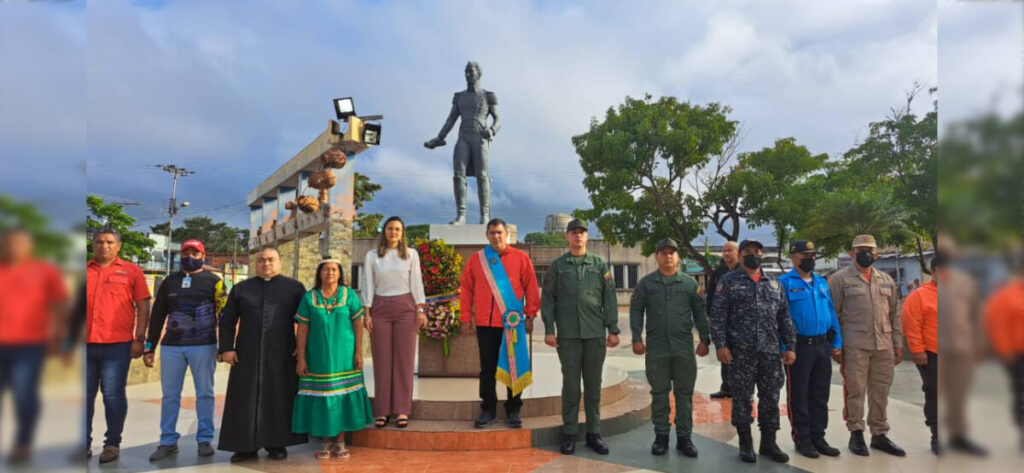 Dicha ocasión sirvió para rendir honores con una ofrenda floral ante el padre de la Patria, Simón Bolívar, donde fueron izadas las banderas, bajo las notas de los himnos interpretadas por la coral del municipio Sotillo.