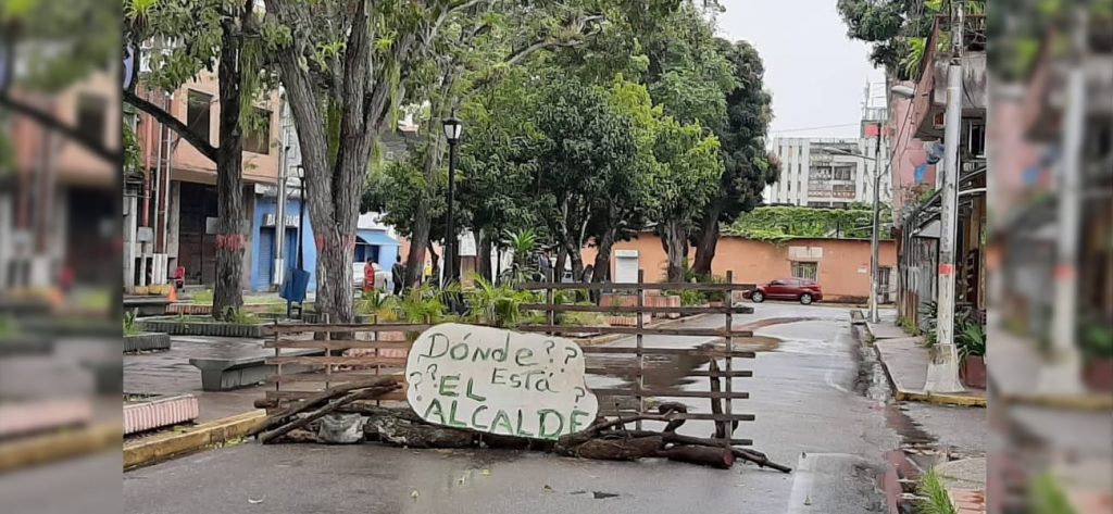 Por tal motivo, ciudadanos decidieron trancar la vía en sentido sur con palos y otros objetos a fin de llamar la atención de las autoridades gubernamentales que transitan por el lugar. Aunque parezca irónico, los residentes del lugar denuncian estar sin el servicio de agua potable desde hace más de seis meses.