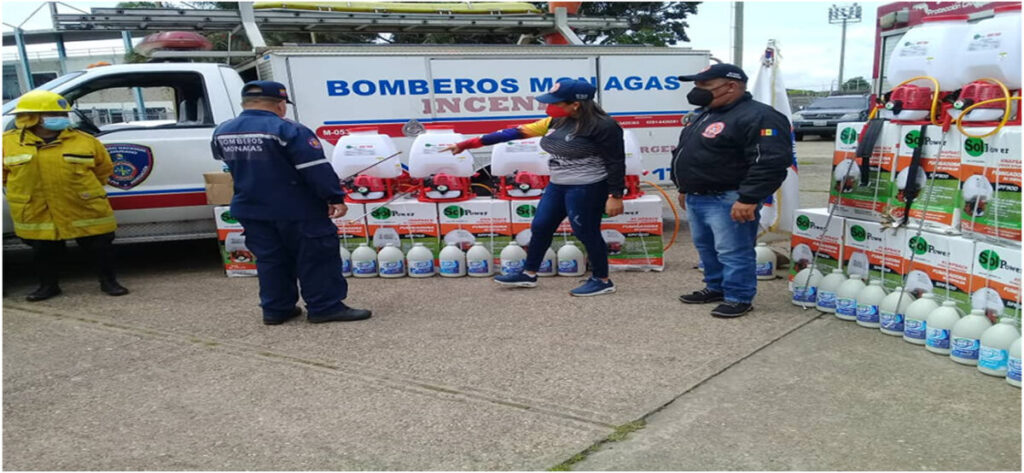 «Para esta estrategia gubernamental que se está llevando a cabo en la instituciones educativas, se han dispuesto más de 900 hombres y mujeres, con el material recibido que son 20 asperjadoras, 20 kits de bioseguridad, que contemplan guantes, lentes y el hipoclorito al 100 por ciento para la desinfección».