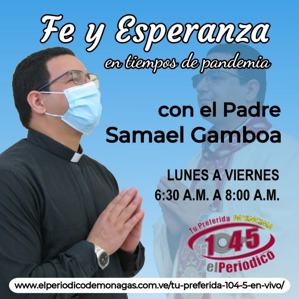 "Tenemos experiencias que nos han marcado y que nos inspiran a seguir de pie y trabajando por ser ese apoyo espiritual que muchos necesitan" dijo sin dudar el padre Samael Gamboa, invitando a sintonizar su programa Fe y esperanza en tiempos de Pandemia, desde este lunes a las 6:30 de la mañana y a través de la 104.5 Tu Preferida.