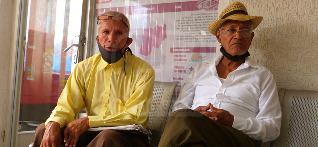 El presidente de la Federación de Jubilados y Pensionados del estado Monagas, Nicolás Velásquez en compañía del representante del Sindicato Único de la Industria de la Construcción, Juan Gómez, exigieron al gobierno llevar las pensiones a $300.