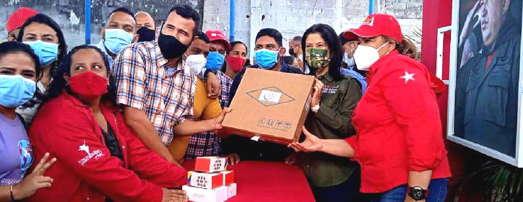 Santaella y la diputada Marleny Contreras entregaron teléfonos celulares y laptops a los equipos políticos de las parroquias y municipios que obtuvieron mayor participación en los comicios legislativos del pasado 6 de diciembre.