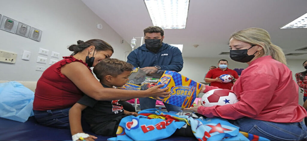 La acción social la efectuaron ambas autoridades este domingo 25 de diciembre, a propósito de la época navideña en la que se celebra la llegada a este mundo del Niño Dios, recorriendo cada una de las camas, interactuando con los pacientes de la Emergencia Pediátrica y del piso 2 de hospitalización infantil.
