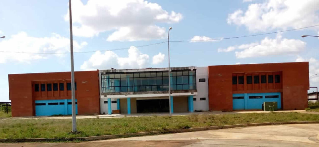Al transitar por la avenida Emperatriz Guzmán, se puede observar la estructura en concreto y vidrio, pintada en color azul y cuyas áreas verdes se encuentran llenas de maleza.