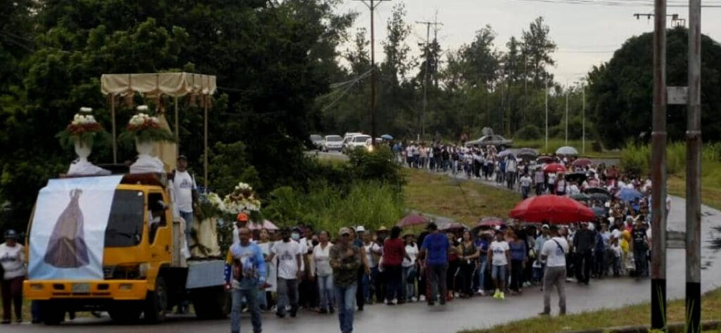 Al partir la peregrinación se sumaron muchos fieles formándose un río humano en la carretera nacional, hacia la capital del municipio, donde se auspiciaría una Eucaristía en honor a la Patrona del Oriente y del pueblo de Punceres.