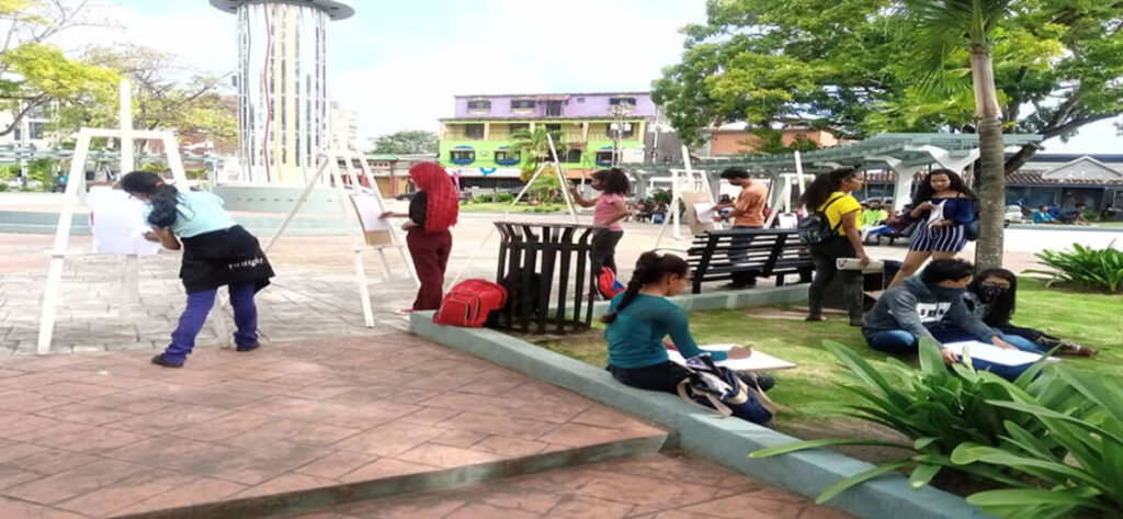 En estos escenarios, los estudiantes trabajaron a mano alzada utilizando técnicas de lápiz de color, grafito, claro oscuro y pintura al frio, disfrutando de la naturaleza para inspirarse a crear obras artísticas.
