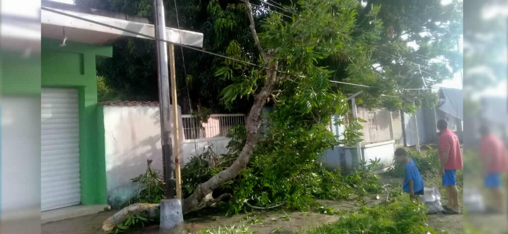 Al menos tres guayas permanecen en el suelo según contó Díaz. Aseguró que media comunidad está sin luz por lo que temen que sus alimentos refrigerados se dañen.