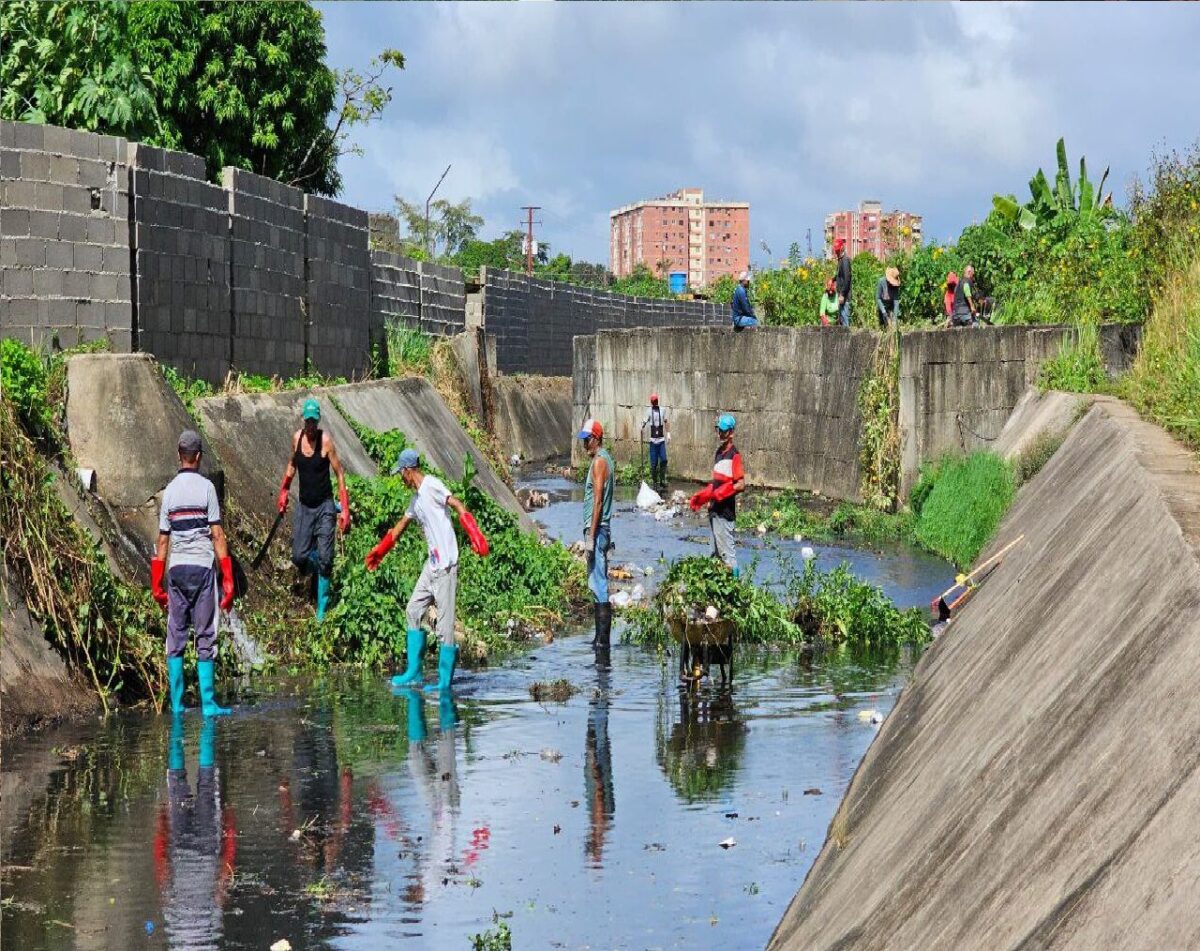 Los trabajos en el caño Los Guaros, que tiene una extensión de 820 metros, en la parroquia Alto de Los Godos, incluyen desmalezamiento, recolección de sedimentos, maleza y desechos sólidos, así como el barrido y mantenimiento de los brocales.