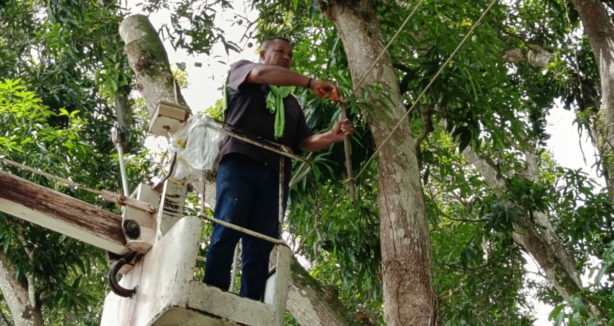 Mejías explicó que la cuadrilla realizó un intenso trabajo de pico y poda en varias matas para proceder al ajuste de la línea, la cual se vio afectada por la caída de una rama.