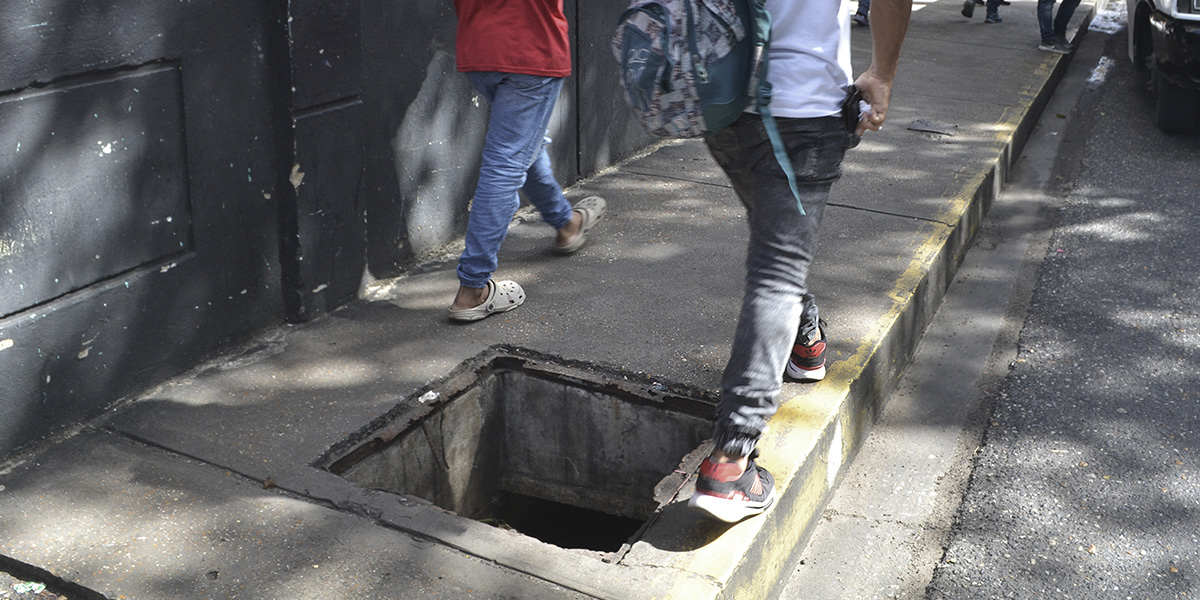 Una alcantarilla sin tapa en plena acera de la avenida Bicentenario, cerca del conocido punto “Calle El Hambre” en Maturín, se ha convertido en un peligro para los peatones que circulan por la zona.
