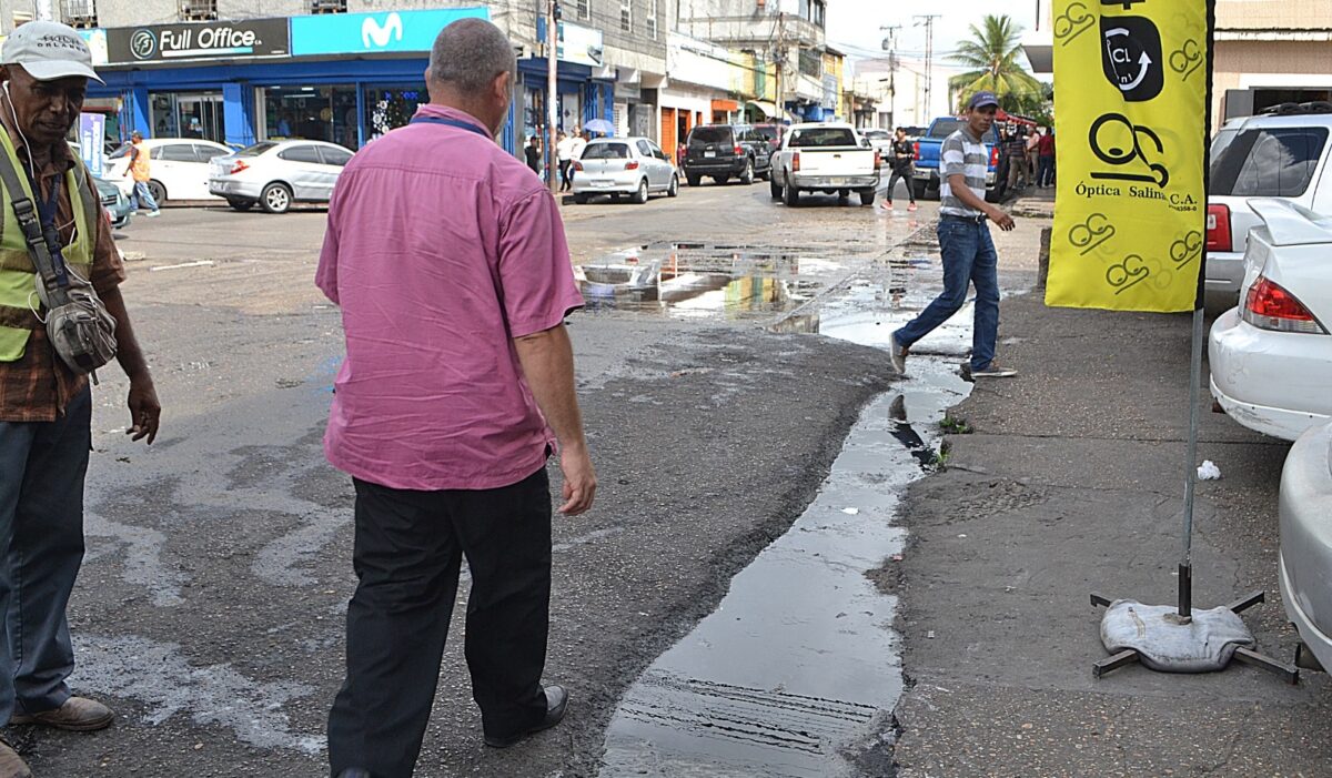 Quienes a diario deben transitar por la antigua calle Barrero, aseguran que el bote de aguas residuales mantiene contaminada la concurrida zona y que el caudal se esparce por varios metros de distancia hasta caer en la avenida Bolívar.