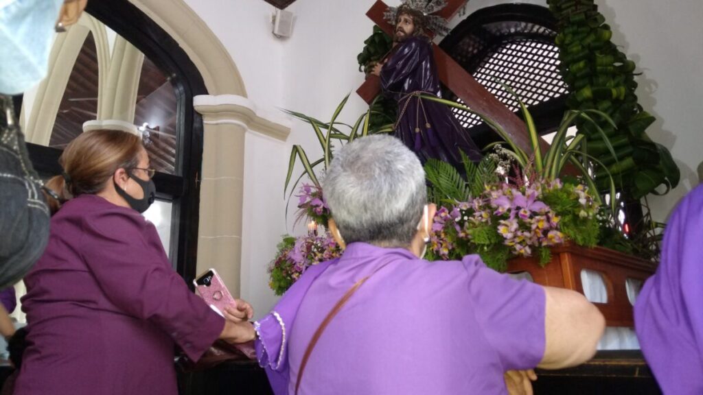 “Yo quedé ciega debido a una subida de azúcar que me dio, no podía ver bien, en esos días mi hermana me trajo hasta este templo y estando frente al Nazareno bendito fue recobrando la visión poco a poco”, aseguró.