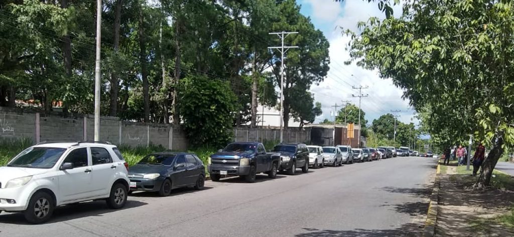 En la avenida Bella Vista, una de las colas llegaba hasta la entrada de Alto Guri y, con más de 400 vehículos esperando, los funcionarios de la Guardia Bolivariana de Venezuela (GNB) no podían garantizar el suministro de todos ellos.