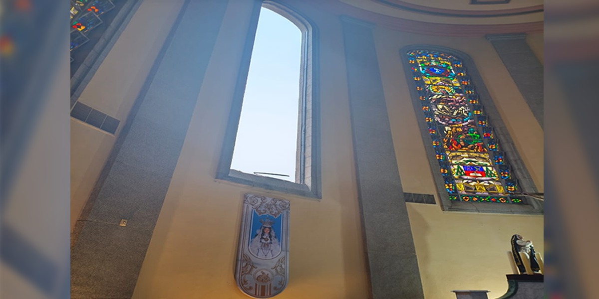 Los fuertes vientos que se generaron en horas de la mañana de este sábado 6 se septiembre, derribaron uno de los vitrales que adornan del altar mayor de la catedral Nuestra Señora del Carmen de Maturín.