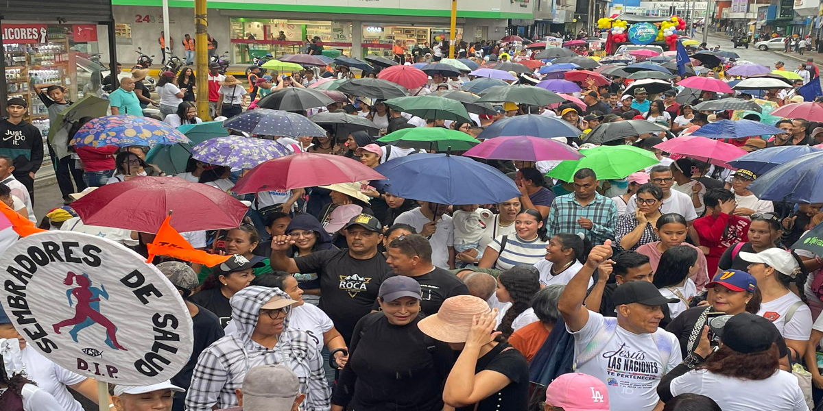 A pesar de que llovió durante la tarde, eso no fue impedimento para que la marcha se llevara a cabo. Con paraguas y bajo la lluvia, los creyentes avanzaron firmes, demostrando que su fe es más fuerte que cualquier circunstancia climática. El compromiso con el mensaje de unidad y adoración fue evidente en cada paso.