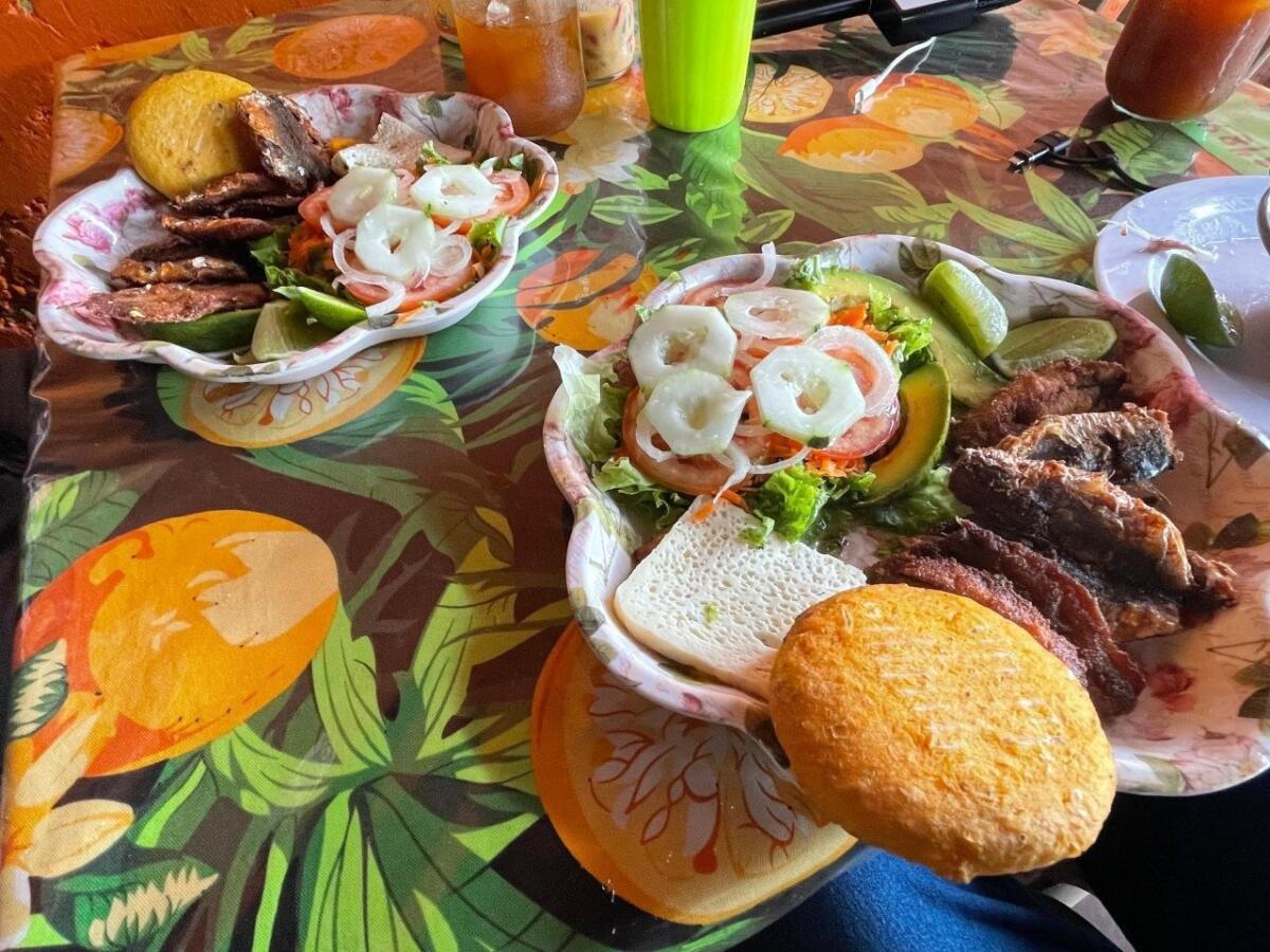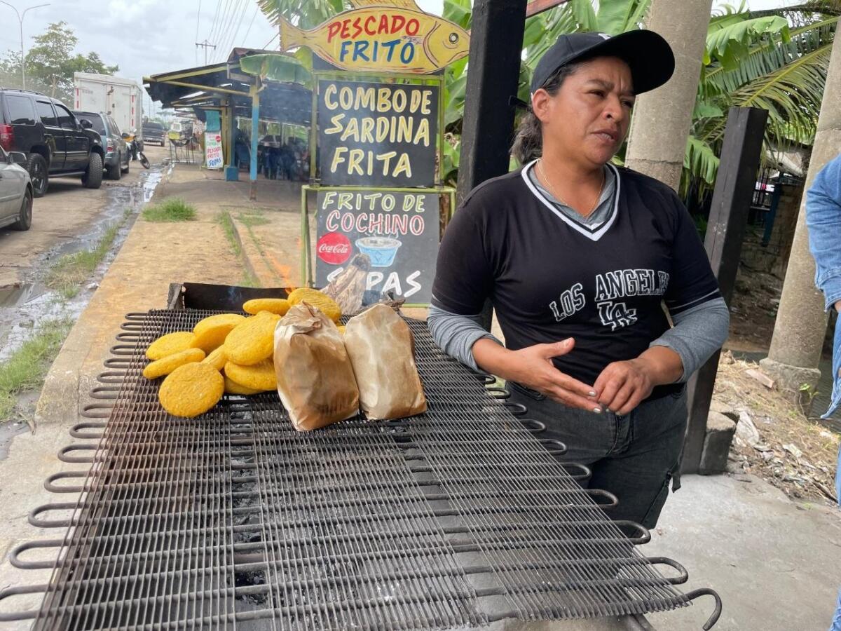 El lugar no pasa desapercibido. A orilla de carretera, los fogones encendidos y la exhibición de arepas de maíz pilado, junto a bolsitas con el popular frito de cochino, captan la atención de conductores y peatones.