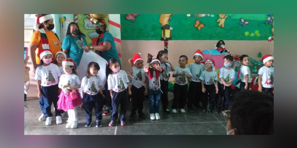 La destacada dirección de la Prof. Marifel Cova, junto al equipo de docentes que lidera, entonaron junto a sus estudiantes las tradicionales canciones navideñas que forman parte de la cultura venezolana, tales como “Mi burrito sabanero, Correla correla, Niño Lindo, entre otras”.