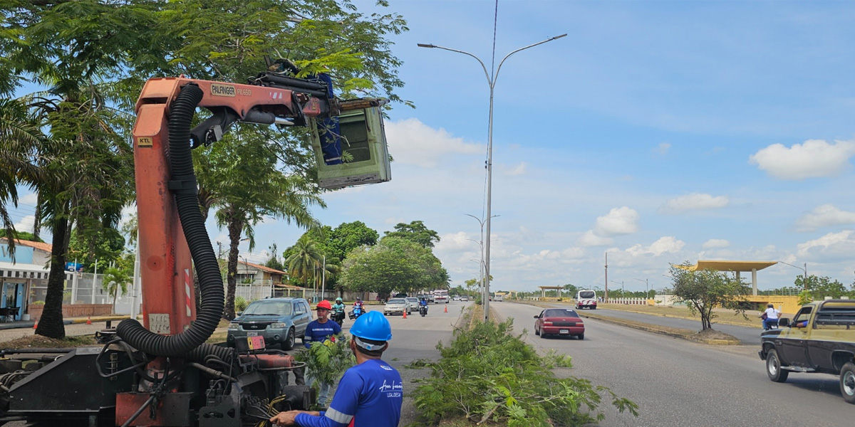 Este jueves el equipo de la alcaldía se desplegó en la avenida Rómulo Gallegos, donde realizaron trabajos de despeje de líneas, poda controlada y mantenimiento preventivo del sistema.