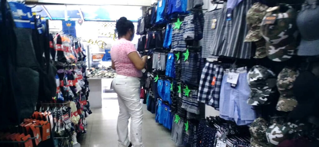 En los diferentes locales se podían apreciar promociones de zapatos en 10$, 2 pares por 15$, tres pares de medias por un dólar, así como los interiores y bóxer que variaban desde los 3.5 hasta los 10 dólares.
