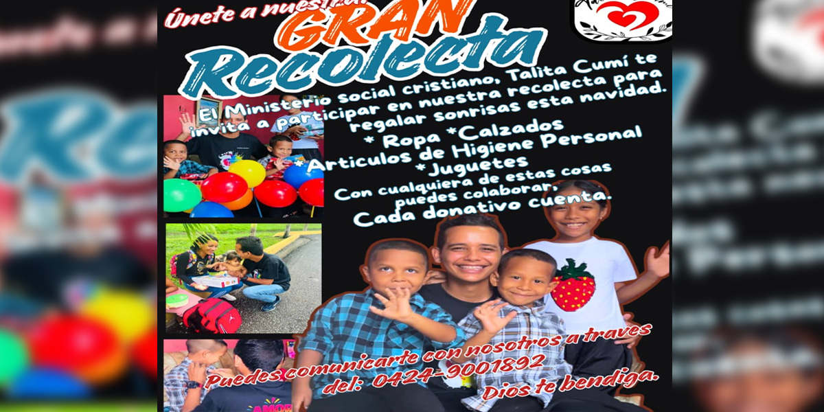 El director del Ministerio Cristiano Social Talita Cumí, Jesús Eleno, junto a su equipo de trabajo, invita a la colecta solidaria de artículos de uso personal, alimentos, ropa en buen estado y medicinas, con el propósito de seguir llevando alegría, bienestar y esperanza a los niños, niñas y adolescentes del estado Monagas.