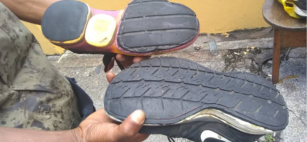 Reparan zapatos con restos de caucho