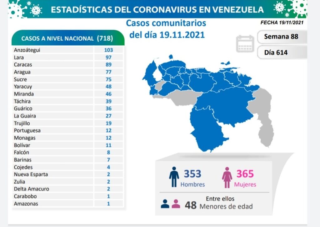 Los casos quedaron distribuidos de la siguiente manera: Anzoátegui 103, Lara 97, Caracas 89, Aragua 77, Sucre 75, Yaracuy 48 y Miranda 46.