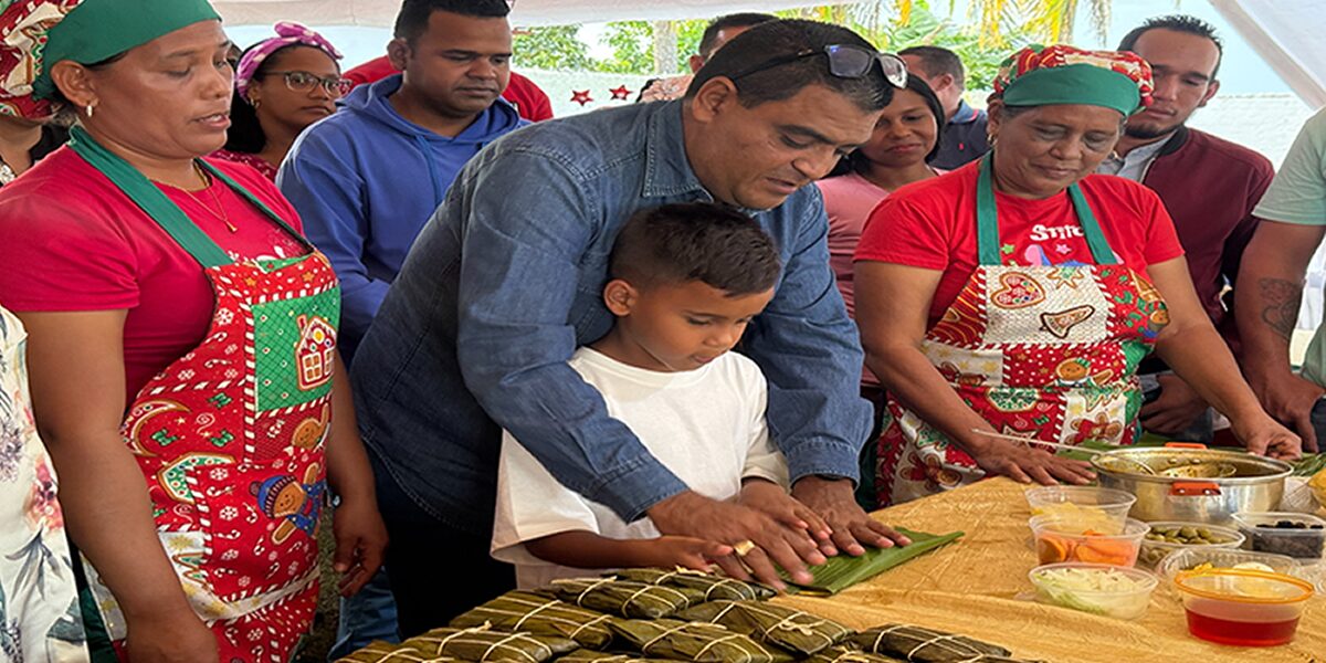 Durante la jornada, el alcalde Carlos Requena acompañó a la comunidad con la elaboración colectiva del corazón del plato típico navideño en el país, en un ejercicio de solidaridad, convivencia y disfrute familiar con el pueblo.