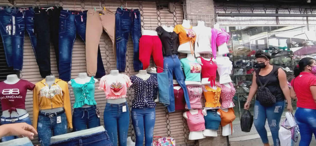 Por su parte Carmen Núñez indicó la gente lo que más compra son pantalones a 10 dólares. No obstante, agrega que en un día lo más que puede vender son 6 pantalones.