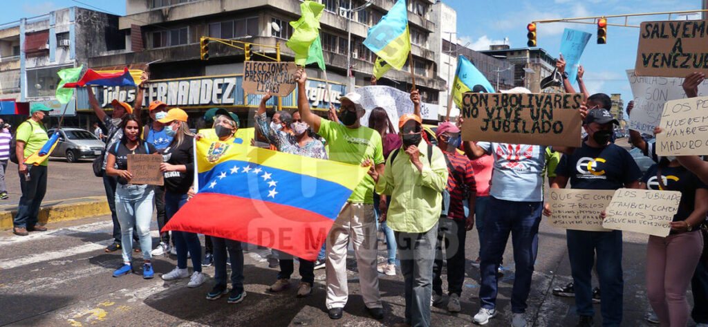 Los pensionados que forman parte del Movimiento Salvemos Venezuela en Monagas, protestaron en la avenida Juncal de Maturín, exigiendo mejores condiciones de vida.