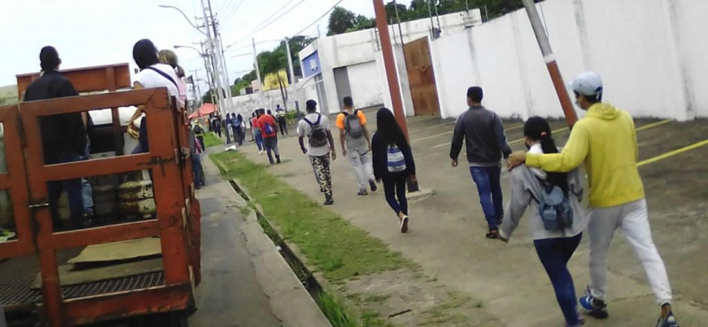 Tal fue el caso de la avenida principal de Las Cocuizas a la altura del punto de control de la PNB donde enormes grupos de personas caminaban hacia el centro. Muchos portando bolsos presumiblemente para ir a trabajar.