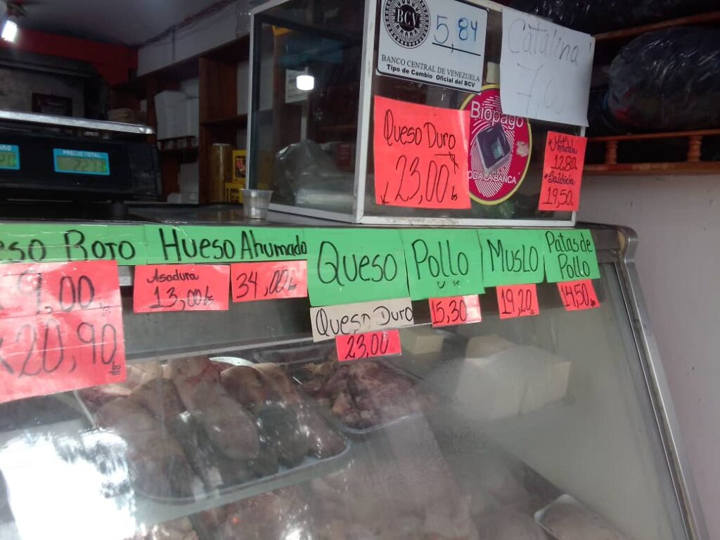 Olga Sánchez, ama de casa, abuela, adulto mayor, habitante de Los Guaritos, quien iba con su nieto de 8 años en un carrito por puesto, dio su opinión, sin otorgar el permiso de fotografía, quien indicó: Mi hijo –el papá del niño- está afuera del país, trabajando y nos manda dinero, y es por mí y por este muchachito que podemos comprar carne, pollo, a veces, y cochino para agregárselo a los granos… carne -refiriéndose a la de res-, pues una vez a la semana… pollo, como tres veces al mes, pero poquito, pollo, pesado… pescado, solo frito… el resto de la familia come huevos, salchicha, granos… mucha salchicha, y lo que trae la caja clap, que si harina de maíz, pero más arroz”.