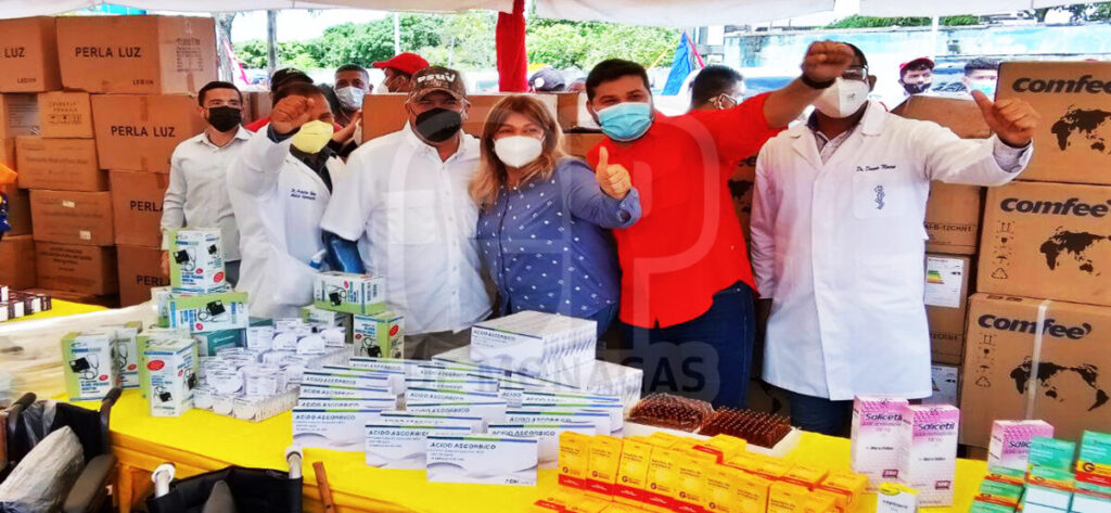 “En nombre del Gobierno Bolivariano, el Superintendente José David Cabello hace el equipamiento de 30 ambulatorios y del hospital Manuel Núñez Tovar. Son medicamentos principalmente para pacientes covid, pero además de eso son insumos como tensiómetros, nebulizadores y medicamentos que permita la atención de quienes lo necesitan”, dijo Santaella.
