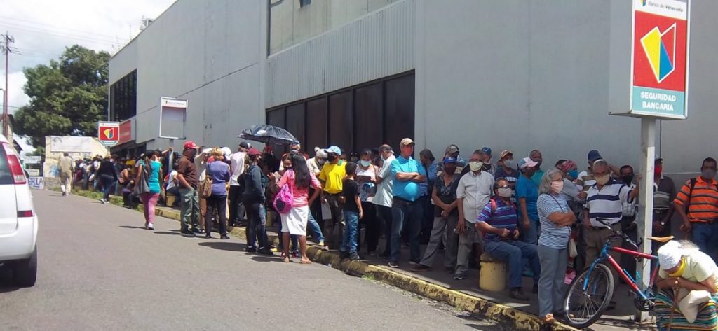 Siguen largas colas y sin distanciamiento en los bancos de Maturín